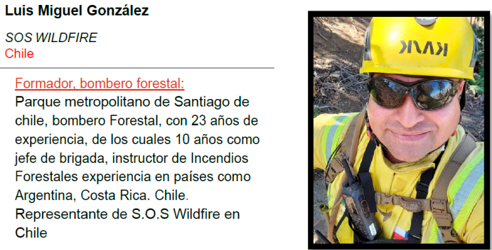 Fundada en España en el año 2021, SOS WILDFIRE, ha trabajado para reunir profesionales de diferentes países con amplia experiencia en la extinción y prevención de incendios forestales, con el objetivo de reunir conocimientos de manera interdisciplinaria y crear proyectos, misiones, soluciones y capacitaciones para los diversos escenarios que están siendo afectados por los incendios forestales.