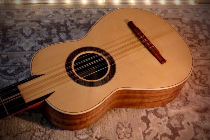 Guitarro murciano único, realizado completamente a mano por el guitarrero Ángel Gómez de Guillén, según los cánones tradicionales de los instrumentos originales del siglo XIX.